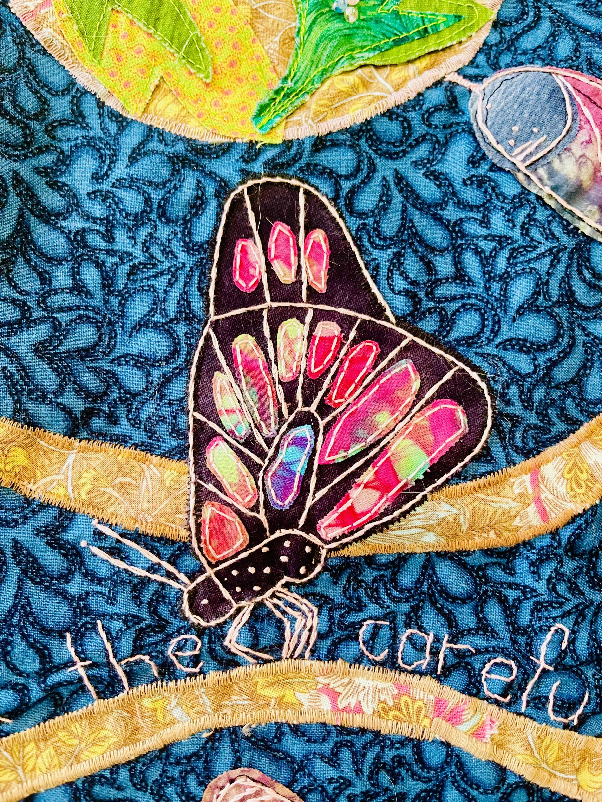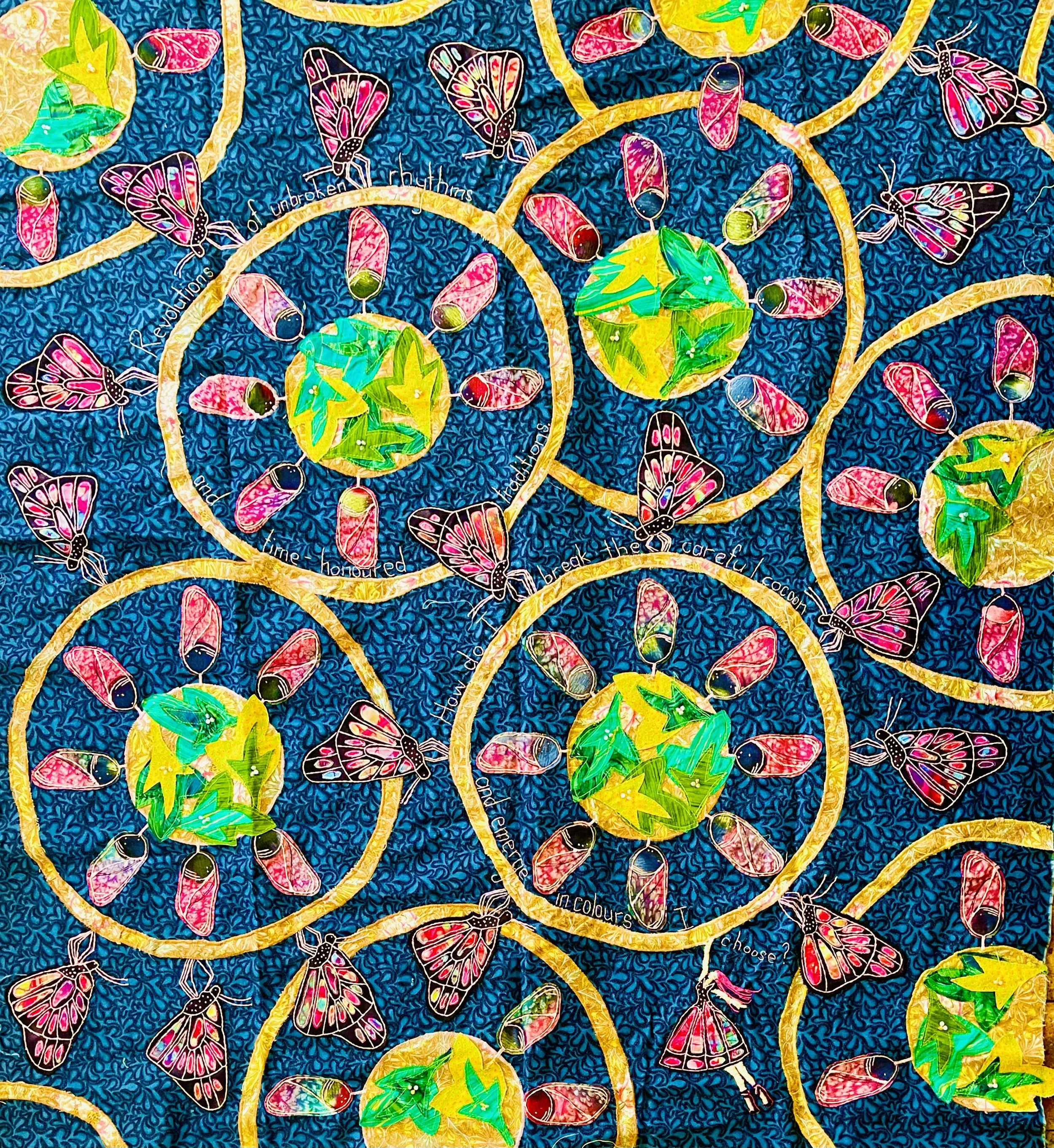 It’s bittersweet. When I started my art journey as a quilt artist, my favourite creation included a poem I wrote in 2011 which asks: “When will I shed the careful cocoon and emerge in colours I choose?” I had no idea how prophetic that quilt would become. It’s the perfect metaphor for this season: shedding old skin, piecing together a new life from what remains, and discovering that the result can be even more colourful, intentional, and beautiful than before.